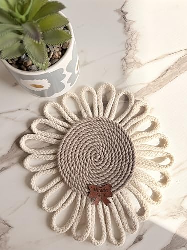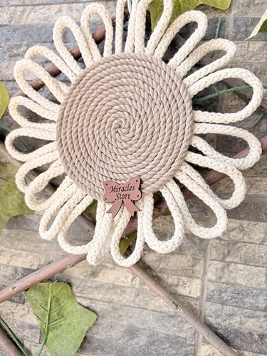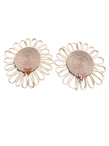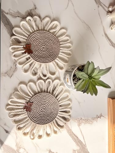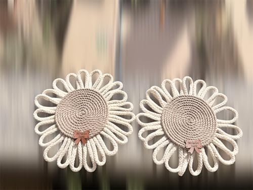 Generic - مجموعة من 2 قواعد اكواب مكرمية دائرية مصنوعة يدويا - استخدام مزدوج كبساط اكواب او ديكور حائط - بني وكريمي - تصميم زهور - قواعد اكواب ميراكلز