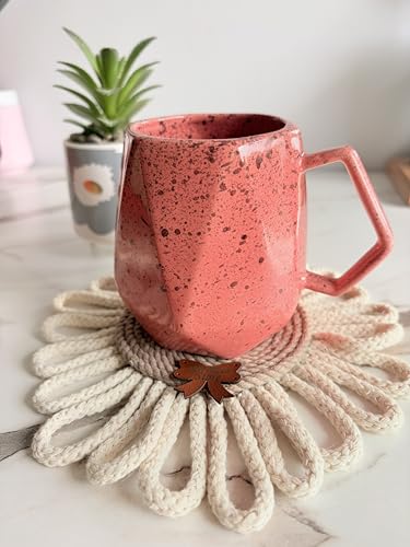 - تتضمن المجموعة قطعتين متطابقتين: مثالية للاستخدام كوقايات أكواب أو زينة جدارية مزخرفة. تصميم 2 في 1: تستخدم كوقايات أكواب عملية أو علقها كديكور فني للحائط. مواد عالية الجودة: مصنوعة يدويًا باستخدام حبل مكرمية قطني متين. شكل زهرة ساحرة: تضيف الألوان النابضة بالحياة والحلقات التفصيلية لمسة مبهجة إلى أي مساحة. مصنوعة يدويًا بعناية: مصنوعة يدويًا بنسبة 100%، مما يضمن التفرد والجودة الحرفية. المقاس التقريبي: يبلغ قطر كل قاعدة أكواب 17 سم (قد تختلف قليلاً بسبب الطبيعة المصنوعة يدويًا).