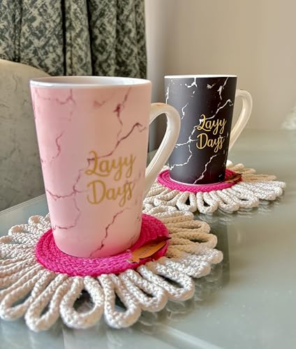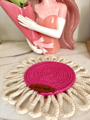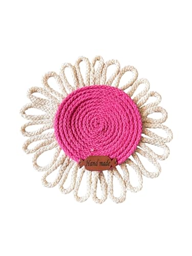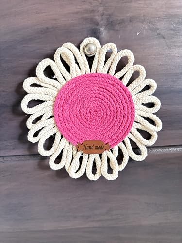 Generic - قواعد أكواب دائرية مصنوعة يدويًا من خيوط المكرمية بتصميم زهور، للاستخدام المزدوج كقاعدة أكواب أو ديكور حائط، وردي وكريمي، عبوة من قطعتين من متجر ميراكلز