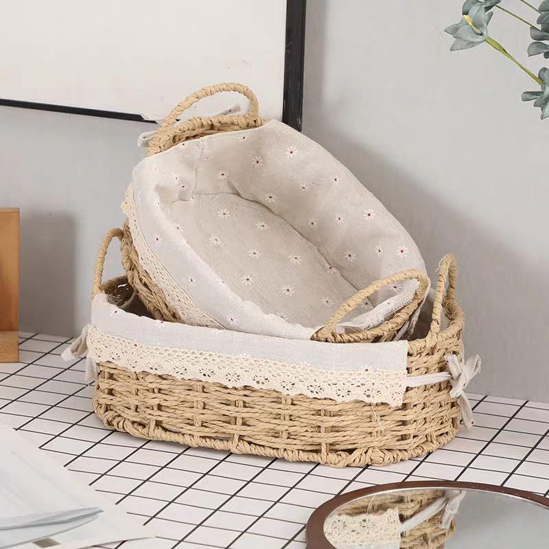 - إضافة ديكورية شيك لمختلف زوايا المنزل: هذا الطقم لا يخدم وظيفة التخزين فحسب، بل يعمل كعنصر ديكور أساسي يضيف الدفء الريفي والجمالية الراقية بفضل مزيج الراتان المجدول وغطاء الكتان المنقوش، مما يجعله مناسباً لكل من الديكورات المودرن والكلاسيكية.