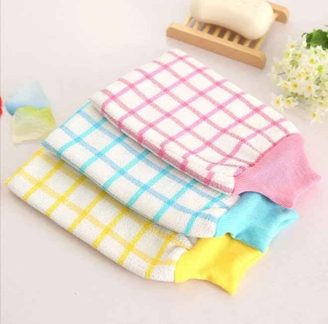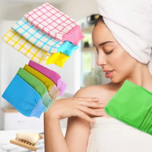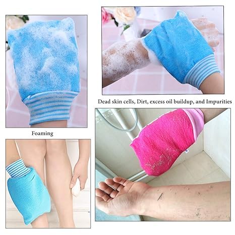 Generic - طقم قفازات تقشير الجسم كورية طبيعية، فرشاة تدليك لطيفة، مقشرات الجسم للحمام لإزالة الجلد الميت وتنظيف عميق، تستخدم مع الصابون أو مقشر الجسم أو جل الاستحمام، ألوان عشوائية، قطعتان