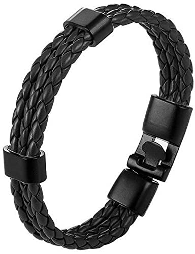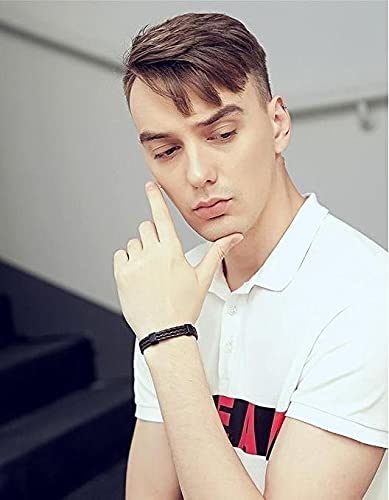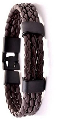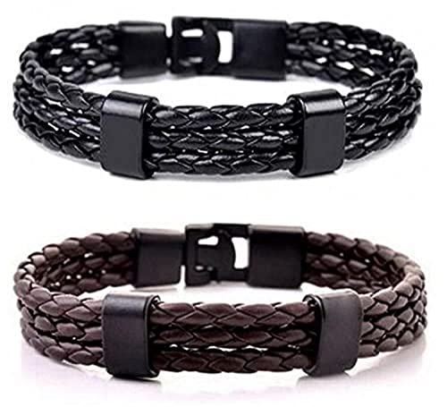 Generic - حزمة من 2 اسورة حظاظة الجلد المجدول 3 طبقات وقفل المعدن للرجال والشباب