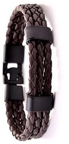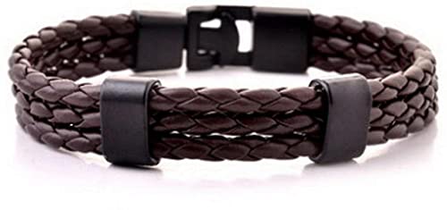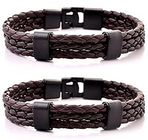 Generic - حزمة من 2 اسورة حظاظة من الجلد المجدول 3 طبقات وقفل من المعدن للرجال والشباب - بنى داكن