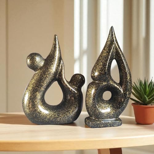 Generic - طقم 2 فازة فخارية ديكورية المكتب و المنزل اسود في دهبي 28 سم va098