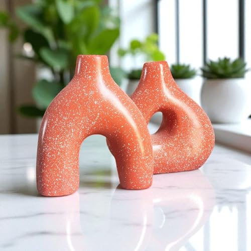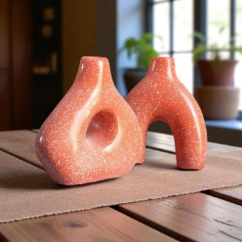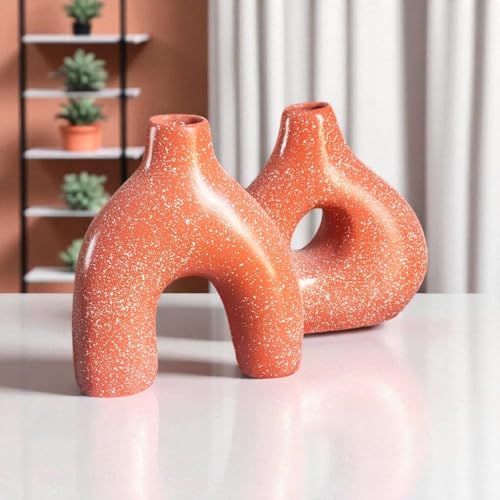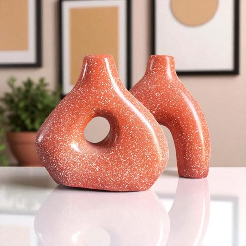 Generic - طقم 2 فازة فخارية ديكورية المكتب و المنزل نحاسي 24 سم va093