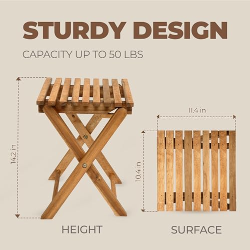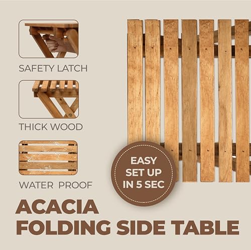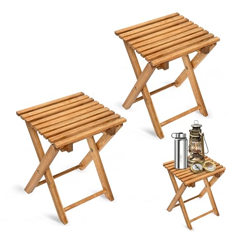 Timberholm - طاولة جانبية خشبية صغيرة قابلة للطي، من خشب الاكاسيا للأماكن الخارجية والداخلية والفناء الخلفي وحمام السباحة، مقاومة للطقس بدون تجميع، لون طبيعي، تصميم مربع، ارتفاع 32 سم، مجموعة من قطعتين