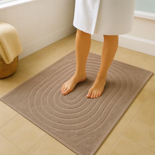 Generic - سجادة حمام ناعمة من القطن بنسبة 100% - 50 × 80 سم - فائقة الامتصاص ومضادة للانزلاق وسريعة الجفاف بتصميم قوس قزح - سجادة حمام فاخرة بلون ابيض ثلجي للمنزل والفنادق من قطعتين (بيج)