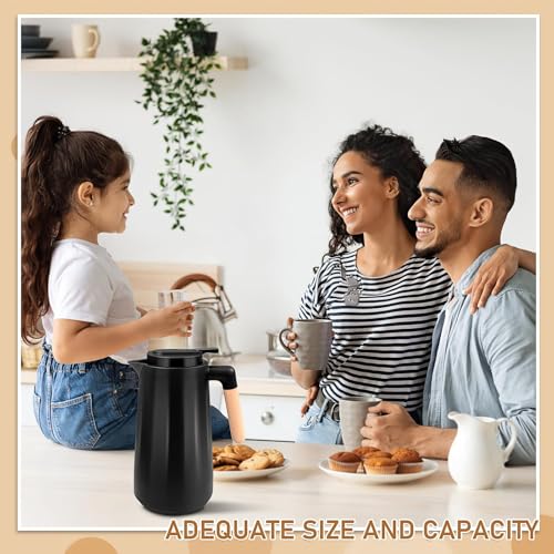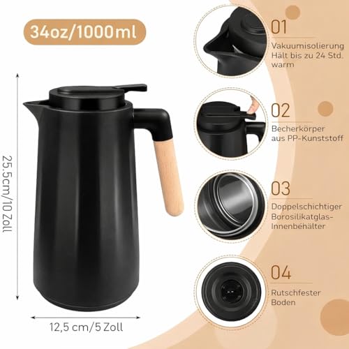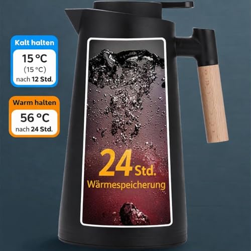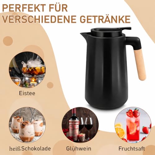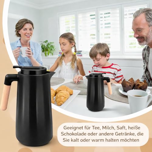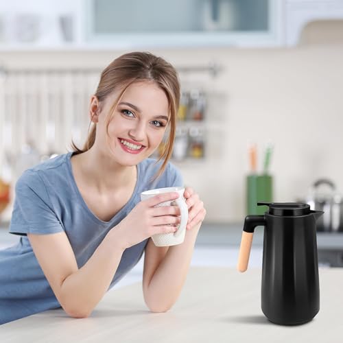 YFNVH - ترمس حراري، أباريق معزولة بفوهة ومقبض خشبي، إبريق قهوة للمشروبات الساخنة والباردة بجدار مزدوج للمطبخ والمكتب والتخييم، مجموعة من 2 قطعة، أسود، 1 لتر
