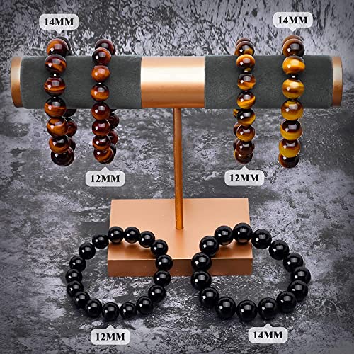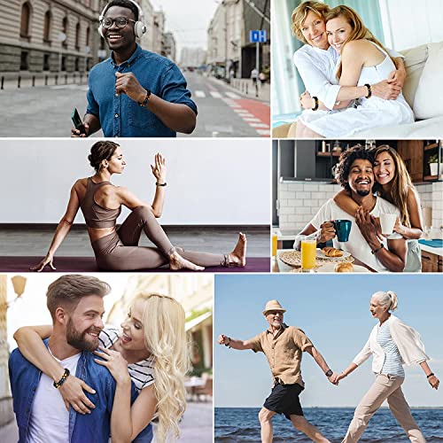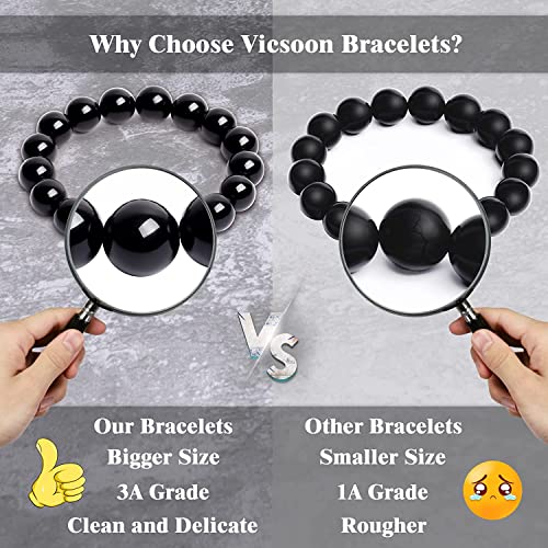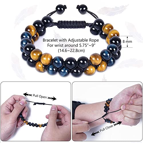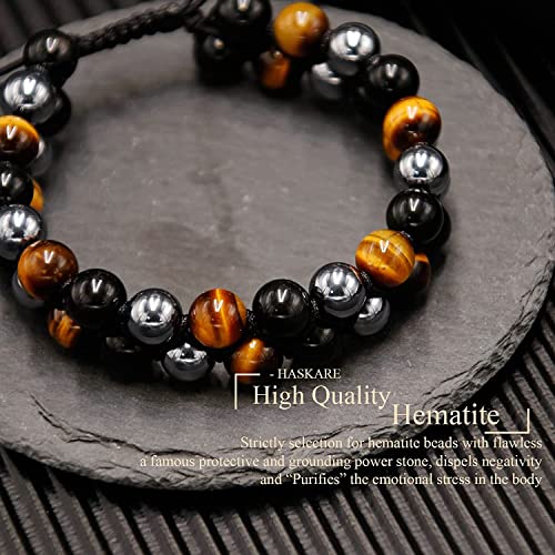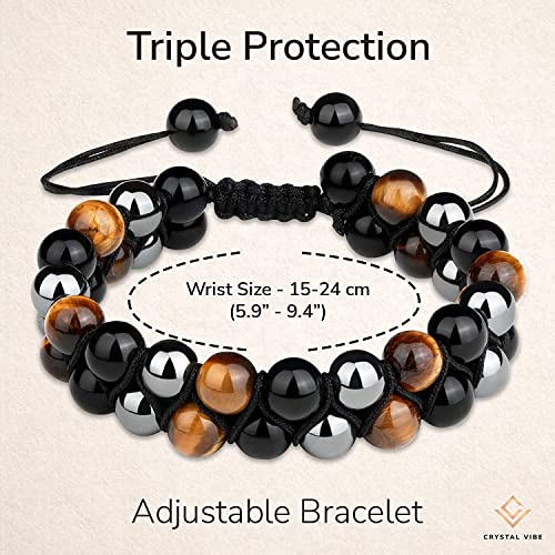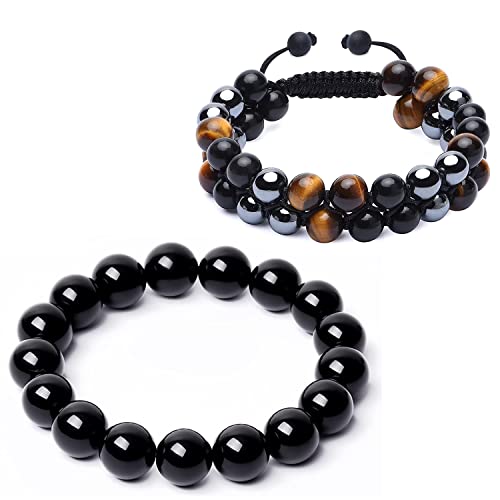 Svedmso - مجموعة اساور حماية ثلاثية خرزية بحجر عين النمر والهيماتيت مقاس 8 ملم للرجال والنساء مناسبة للازواج ولجلب الحظ والسعادة مكونة من قطعتين, كريستال, زجاج بركاني
