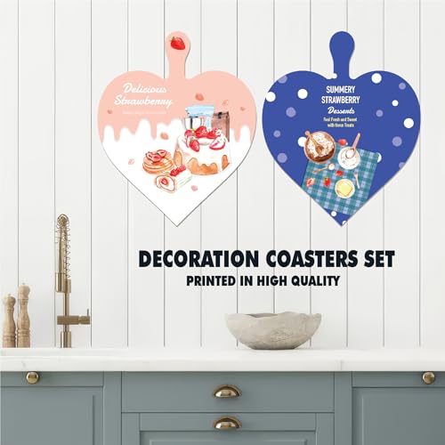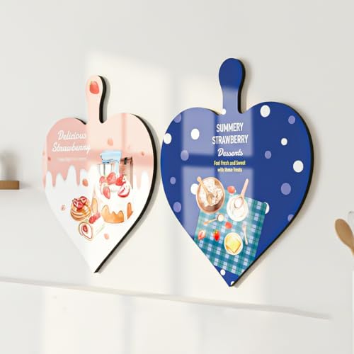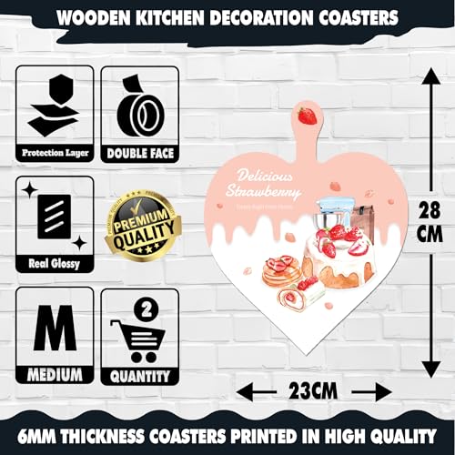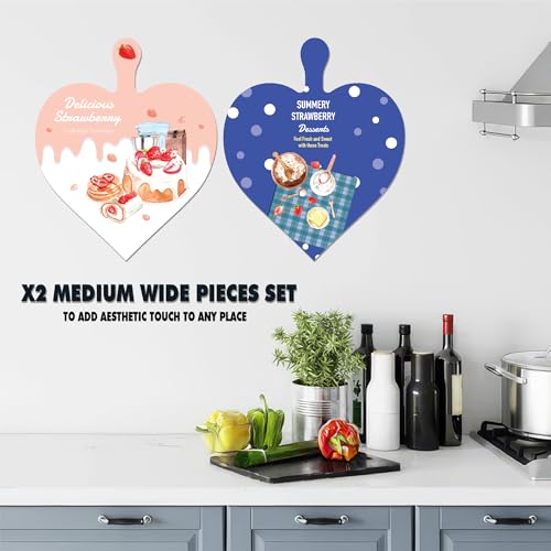 Generic - مجموعة 2 قطع ديكور خشبية على شكل قلب للمطبخ، مقاس 28×23 سم، طباعة لامعة بجودة عالية مع طبقة حماية، تثبيت سهل بلصق دبل فيس، مناسبة لكل أنماط الديكور