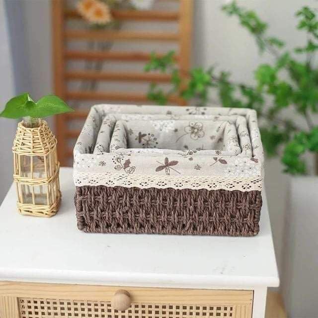- طقم باسكت مجدول مكون من 3 قطع يساعد على تنظيم المنزل وترتيب الأشياء بشكل عملي، سواء في غرفة النوم، المطبخ، أو الحمام، مع تصميم يناسب الديكور الحديث.