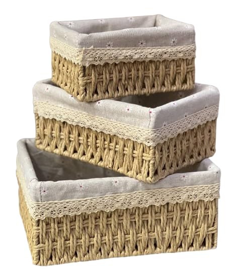 Generic - مجموعة 3 سلال تخزين مضفرة – منظم طاولة وصندوق تخزين أنيق للديكور لغرفة الأطفال، لون بيج (R)