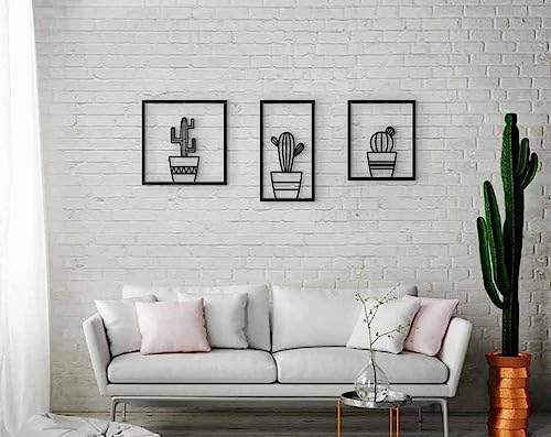 Generic - طقم ديكور حائط بتصميم صبار من 3 قطع مقاس 40 × 40 سم لون اسود WQ.WA147.07