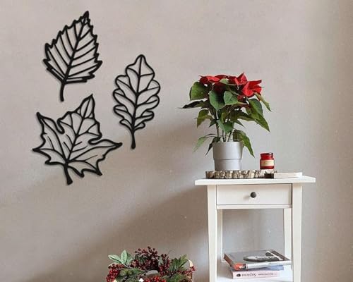 Generic - طقم ديكور حائط بتصميم اوراق شجر من 3 قطع مقاس 20 × 20 سم لون اسود WQ.WA134.19