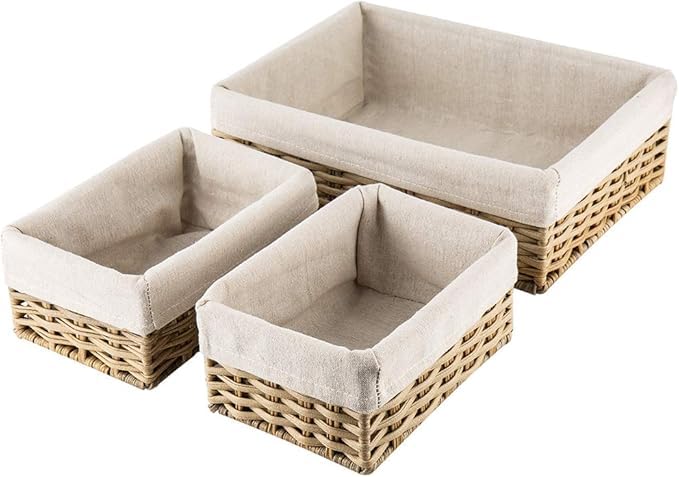 Generic - مجموعة من 3 سلال تخزين منسوجة يدويا من الراتان مع بطانة قماشية أنيقة - منظمات متعددة الأغراض للخبز والفواكه وطاولة المطبخ