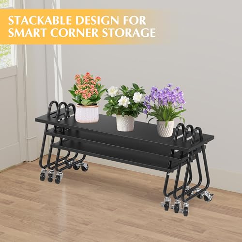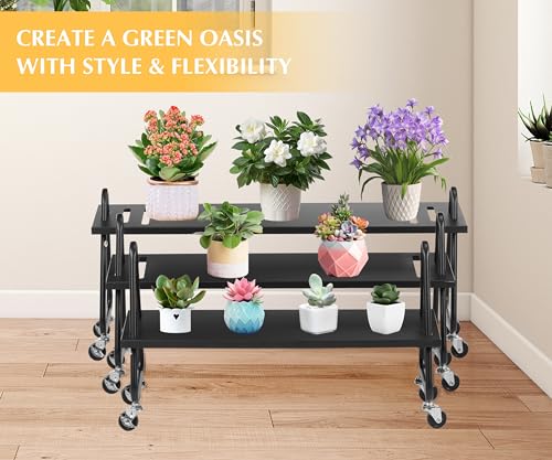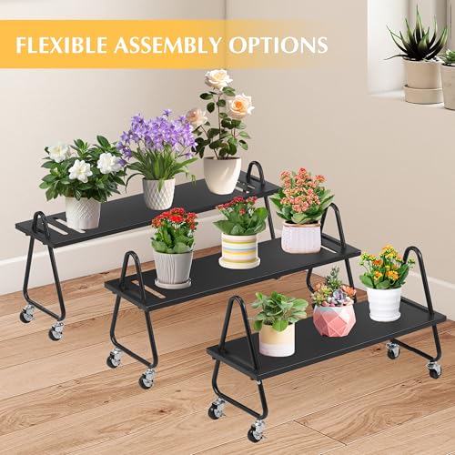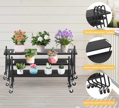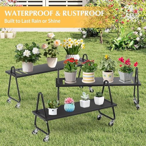 DDK - مجموعة من 3 حوامل نباتات معدنية شديدة التحمل مع عجلات للنباتات الداخلية والخارجية