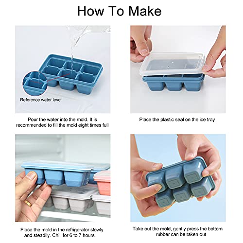 - أغطية قابلة للإزالة: غطاء صينية الثلج مصنوع بغطاء شفاف لإظهار محتوياته. لا ينسكب الماء فوق الجزء العلوي ولا يتم امتصاص الروائح الأخرى في الثلج.