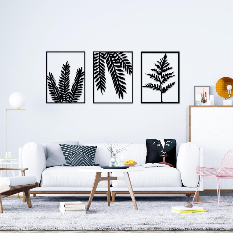 Generic - طقم ديكور حائط بتصميم اوراق شجر من 3 قطع، مقاس 90×90 سم، لون اسود، WQ.WA137.02