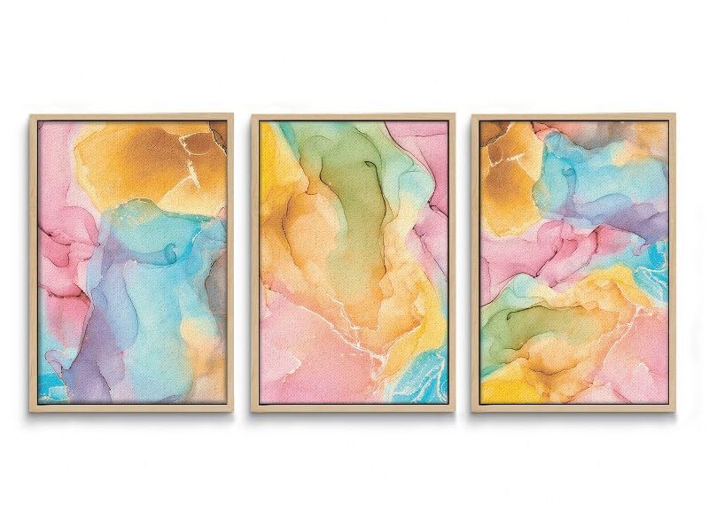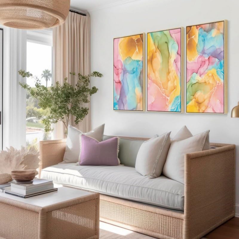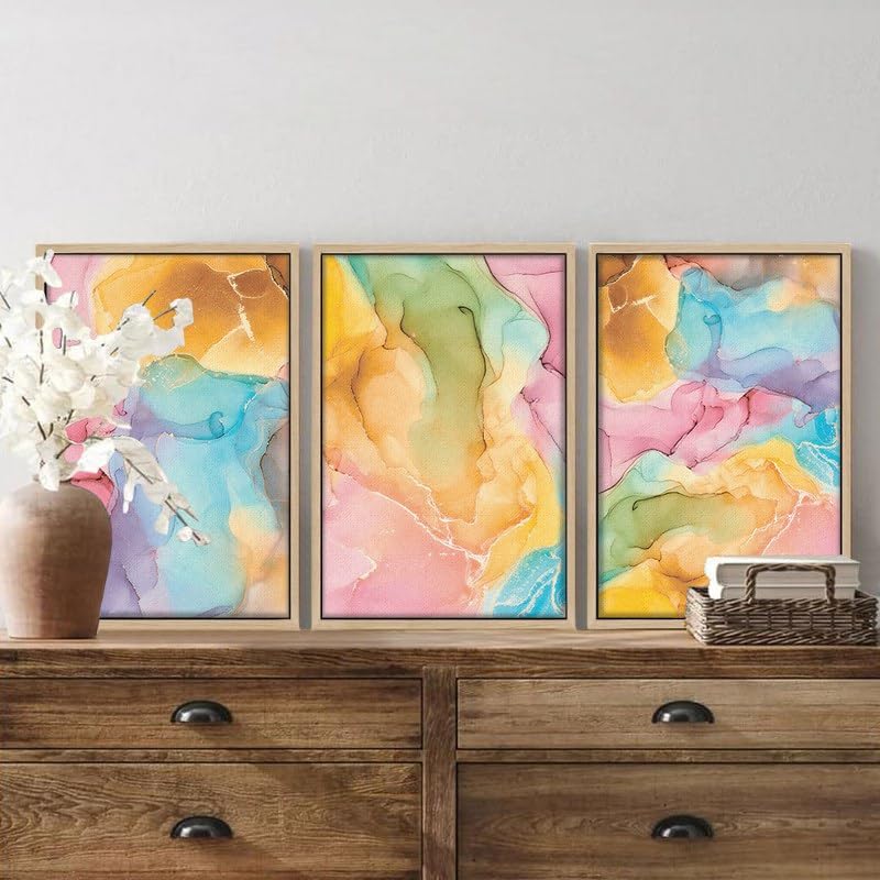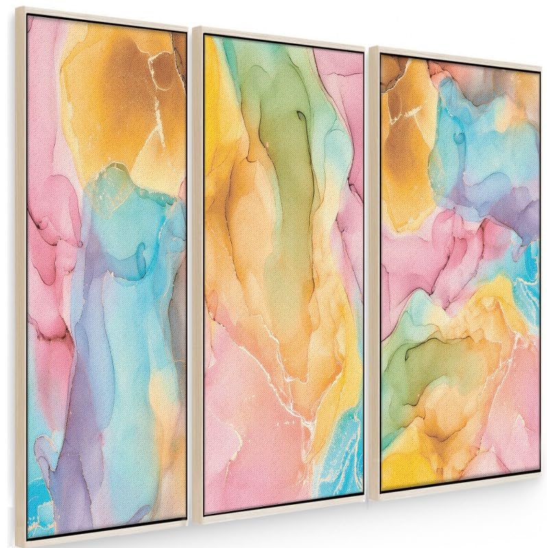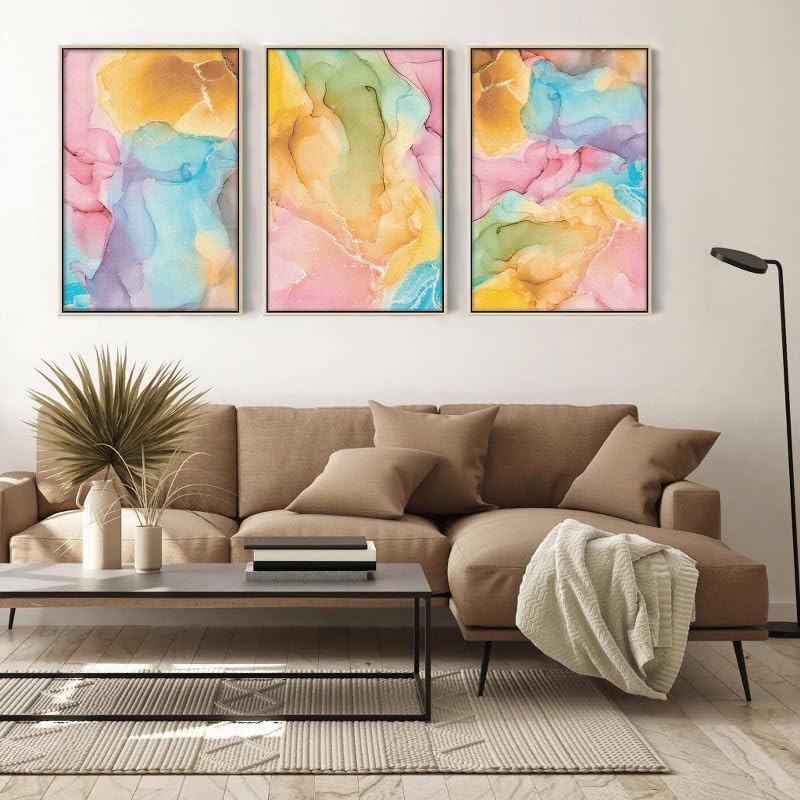 Home Gallery - لوحات جدارية فنية ملونة مع إطار بتصميم رخامي تجريدي، 60 × 40 سم، مجموعة من 3 قطع