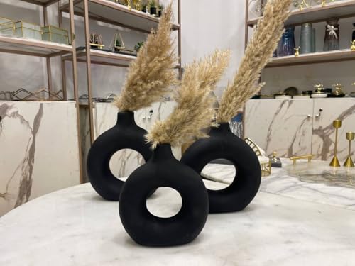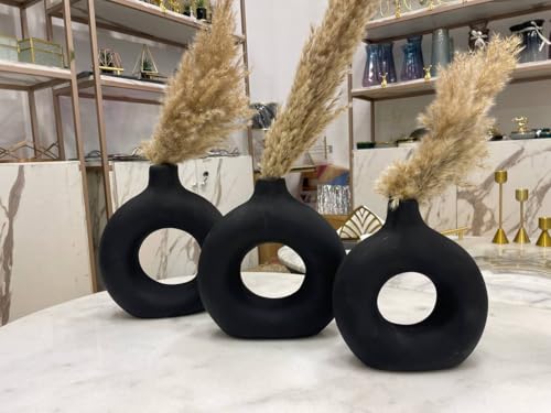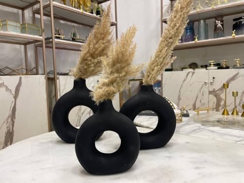 Generic - فازة على شكل دونات لغرفة المعيشة وديكور المنزل والمكتب بنمط بوهو من فلامينجو، مجموعة من 3 قطع (أسود)
