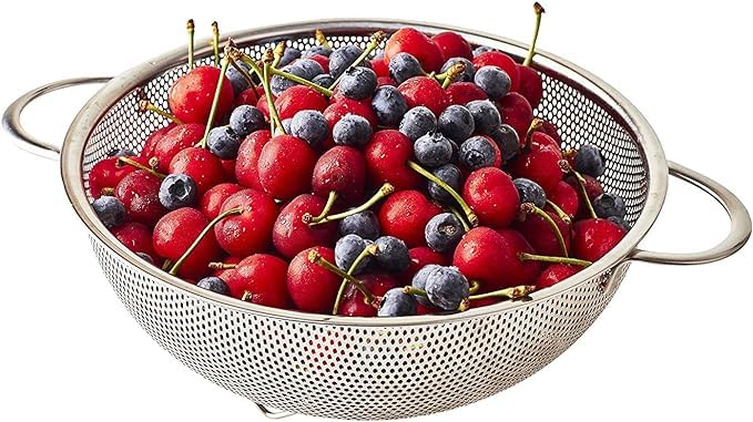 Generic - طقم صفاية مع مقبض من الفولاذ المقاوم للصدأ، سلال مطبخ لغسل الفواكه والخضروات والأرز وتصفية الطعام متعددة الوظائف، 3 قطع