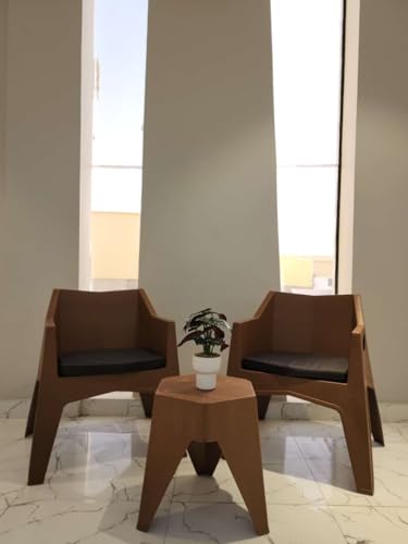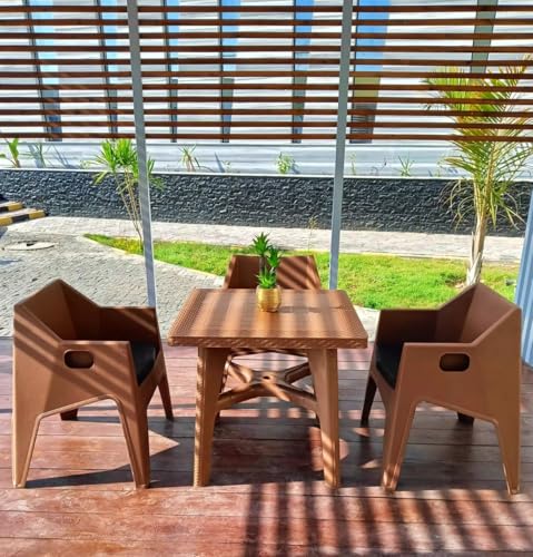 Generic - طقم من 3 كرسي فوتيه بلاستيك وطاولة مربعة 80 سم للمنزل والحديقة والفناء سداسي شكل أنيق يتحمل العوامل الجوية
