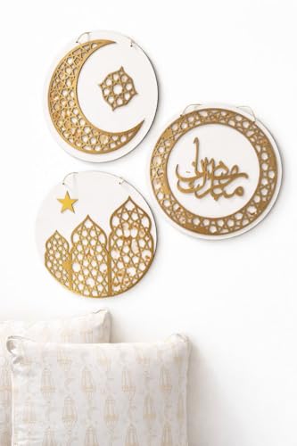 Generic - مجموعة من 3 حلقات حائط خشبية لرمضان - ديكور اسلامي فاخر بتصميم عربي عصري للمنزل والمكتب، جودة عالية، لمسة نهائية دقيقة، مظهر انيق يدوم طويلا (عبوة واحدة)
