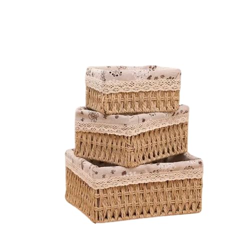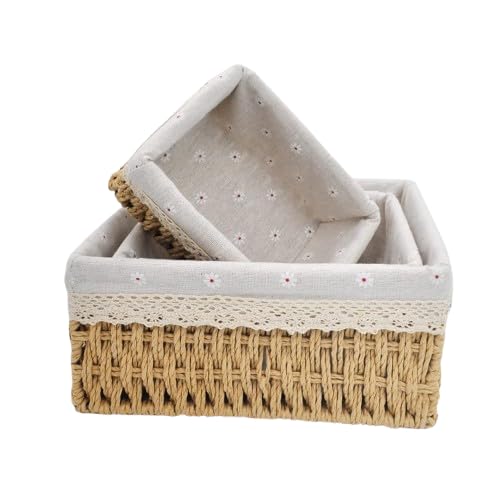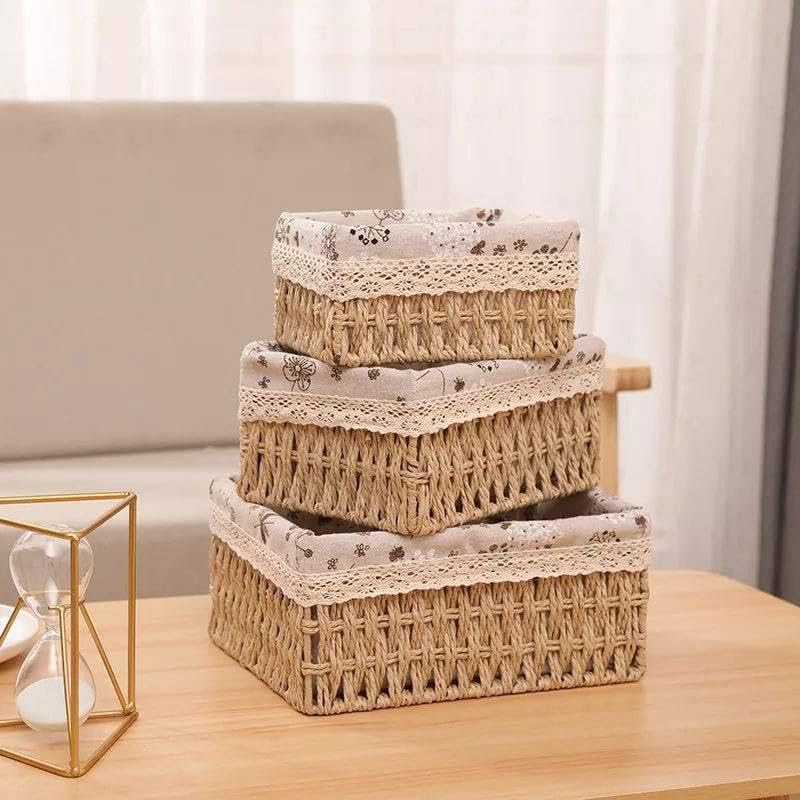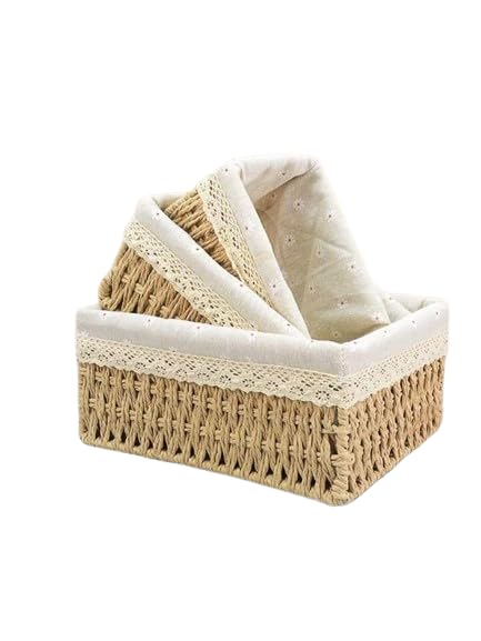 Generic - طقم 3 صناديق تخزين مستطيلة بغطاء قماش كتان – منظم عملي متعدد الاستخدامات بتصميم أنيق Bs
