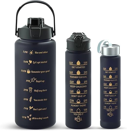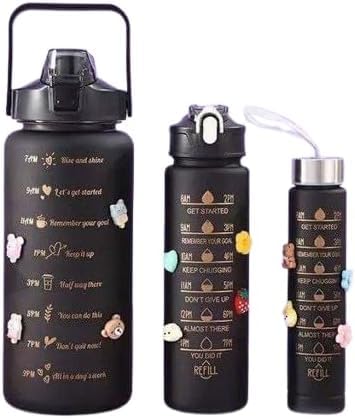 Generic - مجموعة 3 زجاجات مياه رياضية – 300 مل + 900 مل + 2 لتر – آمن مانع للتسريب مع تصميم عملي للجيم، المدرسة والرحلات