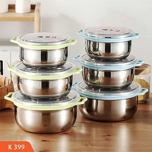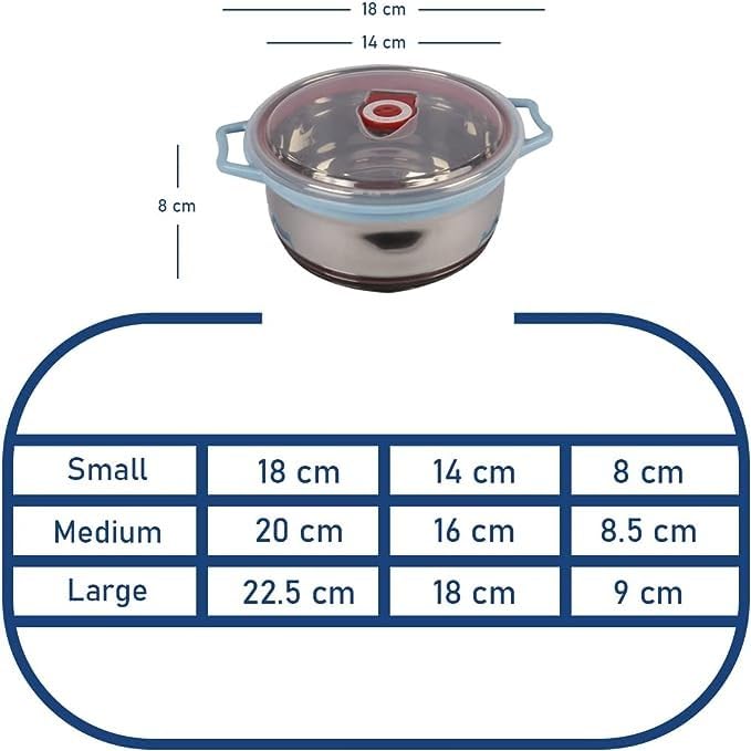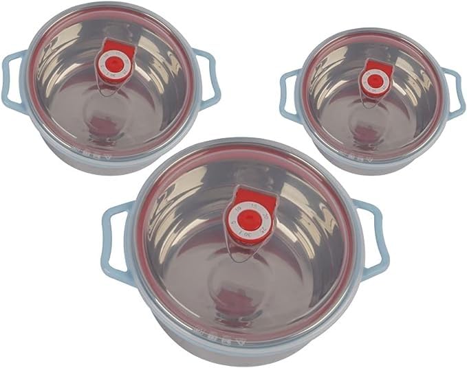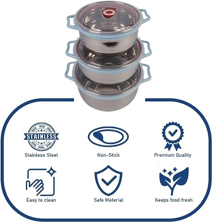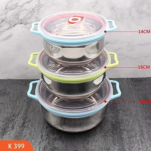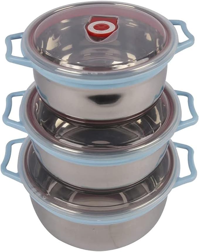Generic - مجموعة من 3 حلل حفظ طعام بمقبضين للثلاجة من الفولاذ المقاوم للصدأ، متعددة الألوان