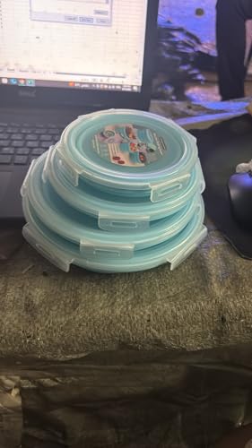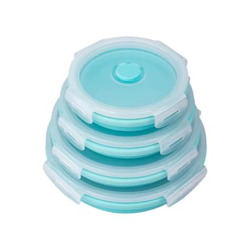 Generic - علب تخزين طعام بينتو قابلة للطي مع غطاء، مصنوعة من السيليكون، علب لانش بوكس قابلة للطي للميكروويف والثلاجة والفريزر، 4 قطع، لون أزرق، بتصميم دائري