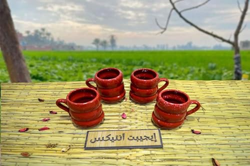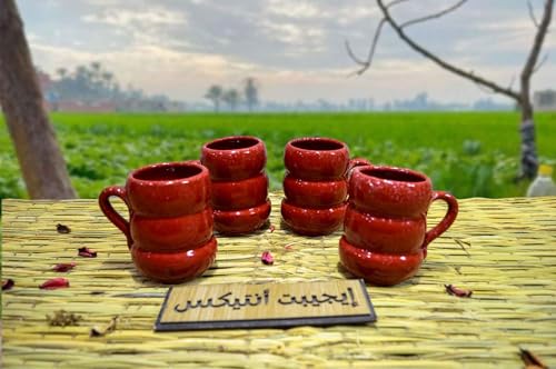 - أكواب فخار صحية مصنوعة يدويًا بنسبة 100% مصنوعة يدويًا بنسبة 100% باللون الأحمر والبني المصري من شركة إيجيبشن بت انتيكس
