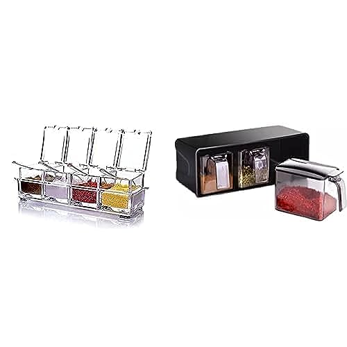 Generic - طقم توابل 4 قطع أكريليك للمطبخ + مطبخ - بهارات 3 معالق للتوابل والسكر والشاي.