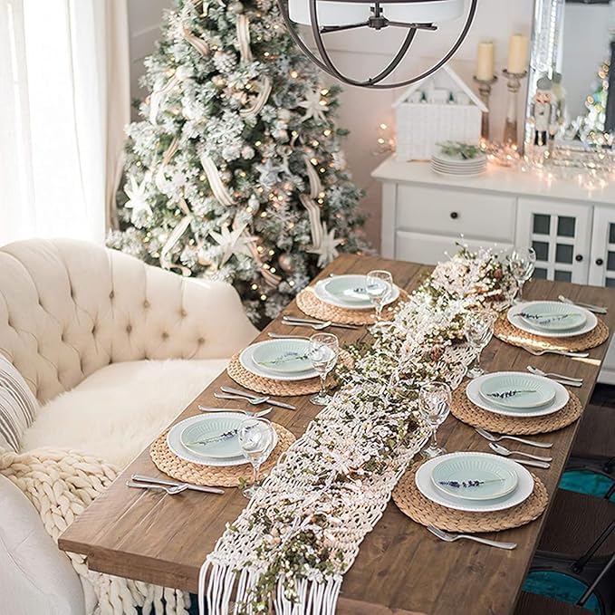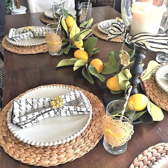 - 3、استخدامات متعددة: مجموعة المفارش المنسوجة هذه هي قطعة الديكور المناسبة لعشاءك أو حفلات الزفاف. مفارش مضفرة منسوجة يدويًا ومتينة، تحافظ على سطح الترابيزة آمنًا من الحرارة والماء. استخدمه تحت الحلل والطاسات الساخنة، واحمي ترابيزتك وسطح المنضدة من الحرارة. تستخدم تحت النباتات لحماية الأرضيات الخشبية الموضوعة عليها.