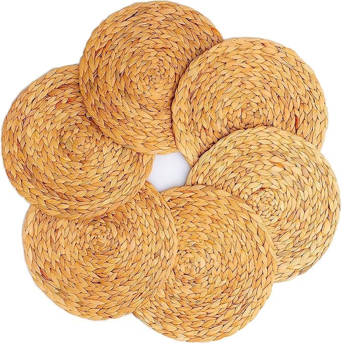 Generic - مفارش مستديرة منسوجة كبيرة، مفارش طاولة مجدولة مصنوعة يدويًا من القش الطبيعي المقاوم للحرارة والانزلاق لطاولة الطعام، 4 قطع (30 سم، مفارش مضفرة من القش)