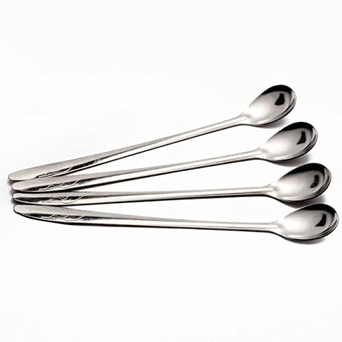 Generic - طقم من 4 ملاعق شاي وقهوة وآيس كريم من الإستانلس ستيل بمقابض طويلة