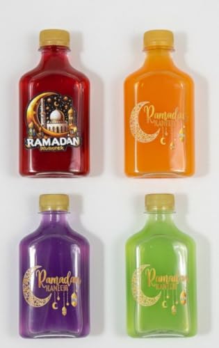 - محتوى الطقم: يتضمن 4 زجاجات عصير ميني بتصميم رمضاني مميز بألوان جذابة (أحمر، برتقالي، بنفسجي، أخضر) مع أغطية محكمة الإغلاق