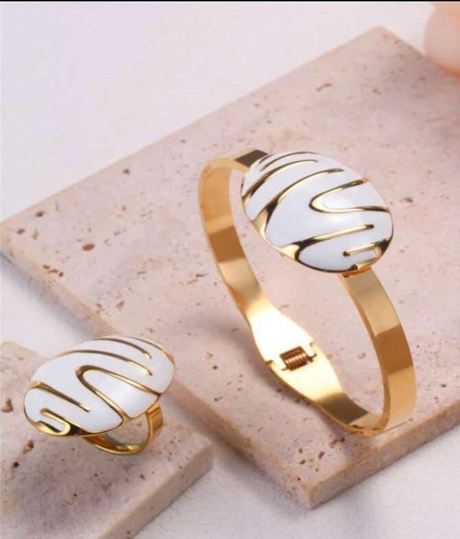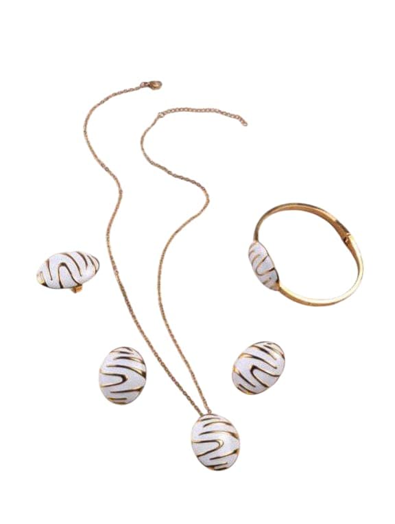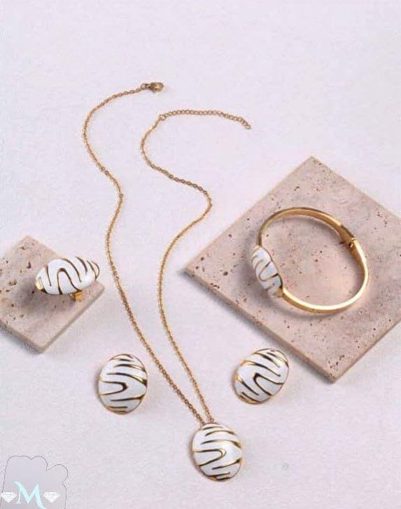 Generic - طقم من عقد، حلق، وانسيال، وخاتم للنساء - مطلي بماء الذهب عيار 21 - لا يسبب الحساسية - مجموعة من 4 قطع