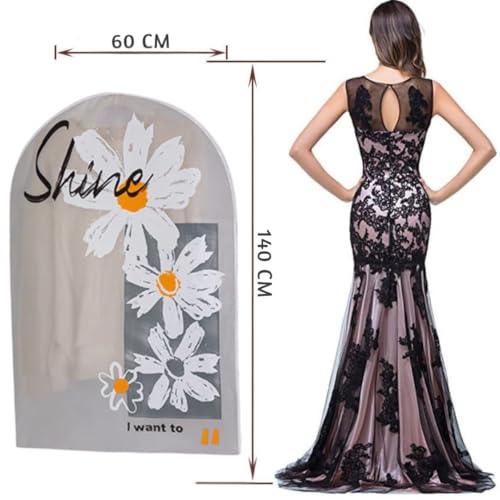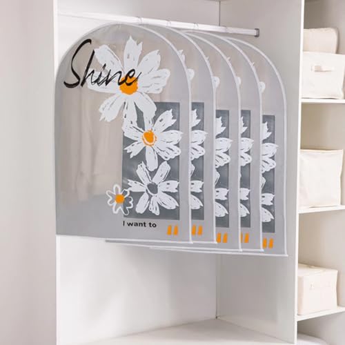 Generic - مجموعة من 5 أكياس ملابس للتخزين في الخزانة، غطاء بدلة بلاستيكي بسوستة مقاوم للماء شبه شفاف للبدلات والمعاطف والجاكيتات والفساتين مقاس 60 سم × 1.40 م (رمادي)