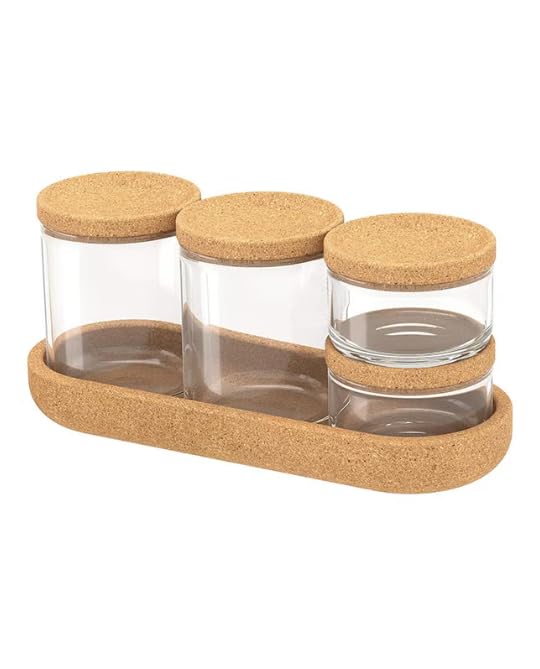 generic - طقم برطمانات زجاجية مع فلين وصينية من 5 قطع