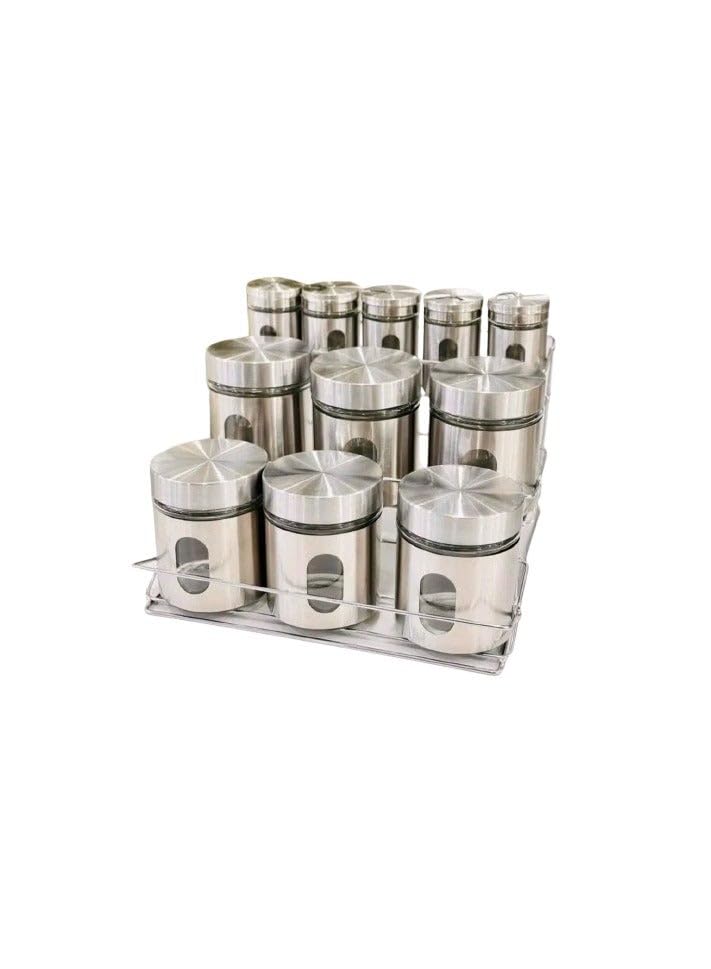generic - مجموعة من 5 شيكرات ملح مع 6 برطمانات ستانلس ستيل 33 × 31 × 26 سم