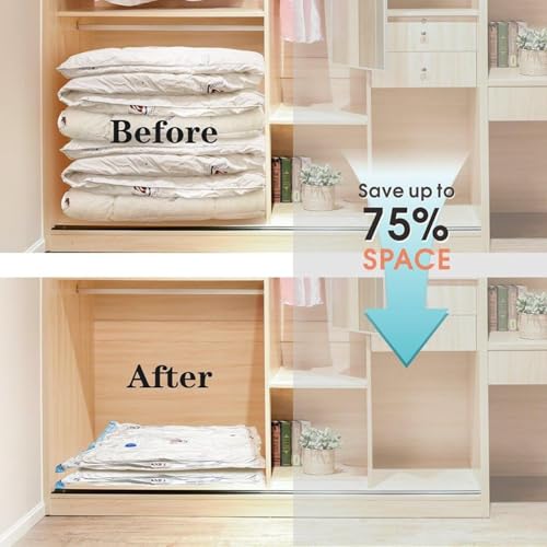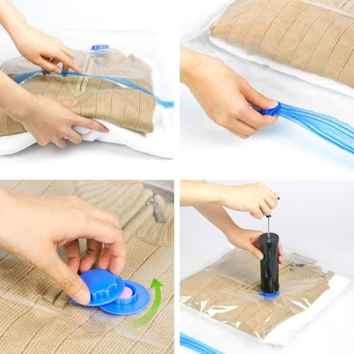 Plan A - مجموعة من 5 أكياس تخزين مضغوطة بالتفريغ مع مضخة يدوية، وحقيبة الملابس المضغوطة، قابلة لإعادة الاستخدام ومنظم للبطانيات والملابس والفراش، بلاستيك، شفاف Plan A
