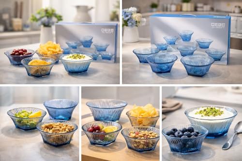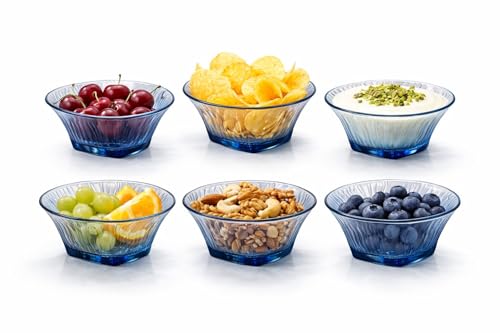 Generic - مجموعة من 6 اوعية تقديم زجاجية زرقاء - اوعية للحلويات والوجبات الخفيفة والزبادي للاستخدام اليومي والترفيه (ازرق)