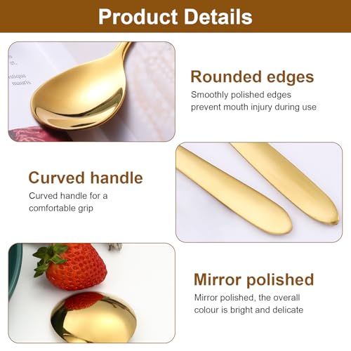 - سهلة الاستخدام: مقبض ملعقة ذهبي طويل بما فيه الكفاية، تصميم منحني، تصميم مريح، قبضة مريحة. ملعقة شاي ذهبية بتصميم بسيط، خطوط ناعمة، مظهر رقيق وجميل، مناسبة للاستخدام مع جميع أنواع أدوات المائدة.