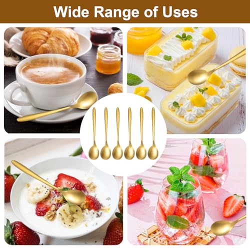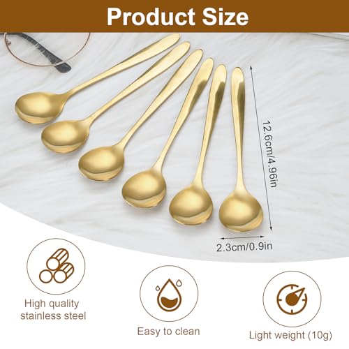 EXIN DEHCEN - مجموعة معالق شاي ومعالق قهوة بلون ذهبي من الفولاذ المقاوم للصدأ مقاس 12.6 سم، معالق إسبريسو ديميتاس بلون ذهبي مطفي ومعالق صغيرة للحلوى والقهوة والايس كريم، 6 قطع
