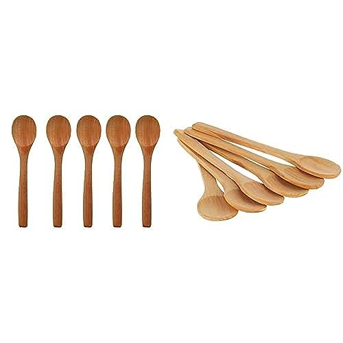 Generic - مجموعة من 6 معالق خشبية صغيرة بيج للمطبخ والشاي