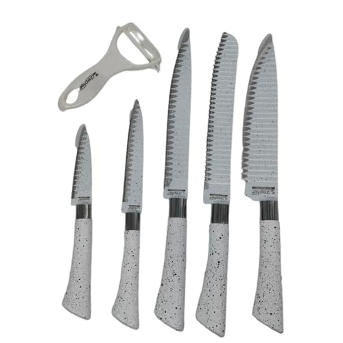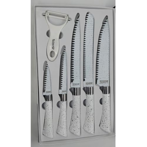 Generic - طقم سكاكين مطبخ من الستانلس ستيل منقط باللون الابيض في صندوق هدايا - 6 قطع
