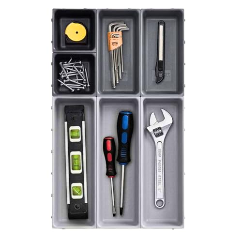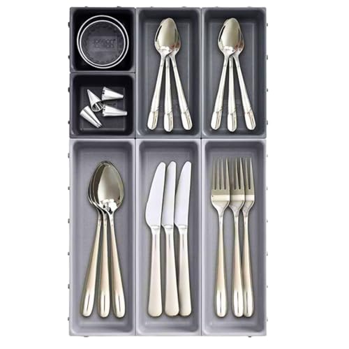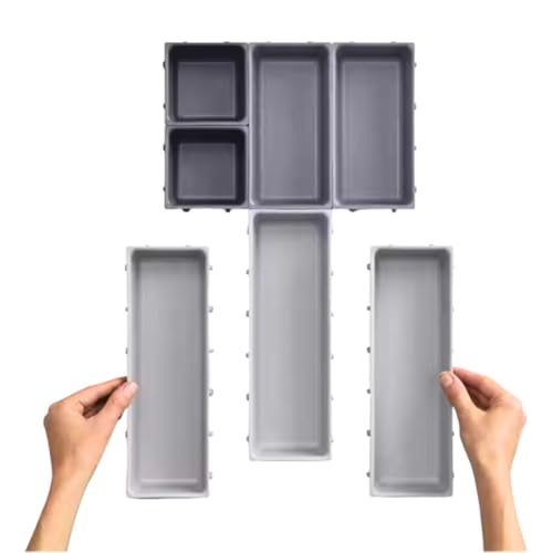 Generic - منظم أدراج للأدوات المنزلية، بتصميم عصري، باللون الرمادي، مصنوع من البلاستيك، قابل للتعديل، طقم من 7 قطع قابلة للتخصيص