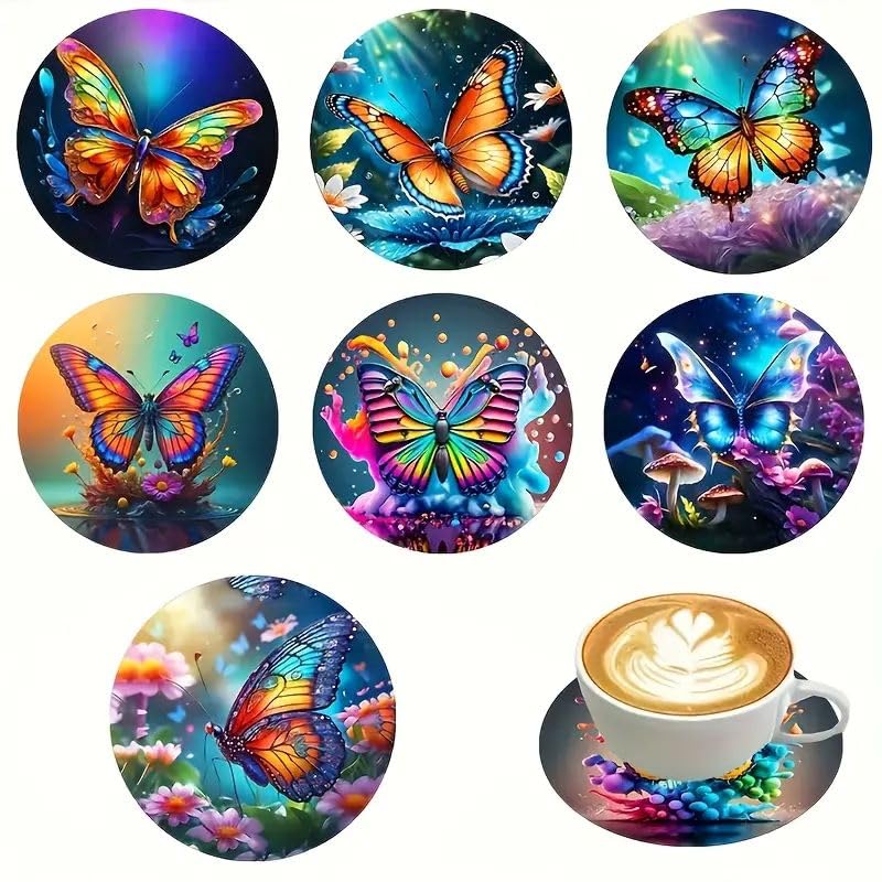 Generic - مجموعة من 8 قواعد الاكواب الخشبية mdf بتصميم الفراشة للمشروبات، للديكور المنزلي والحفلات، غير قابلة للانزلاق ومقاومة للحرارة