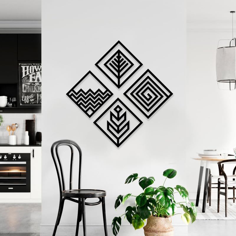 Generic - طقم ديكور حائط مكون من اربعة عناصر مقاس 60 × 60 سم بلون اسود WQ.WA72.15